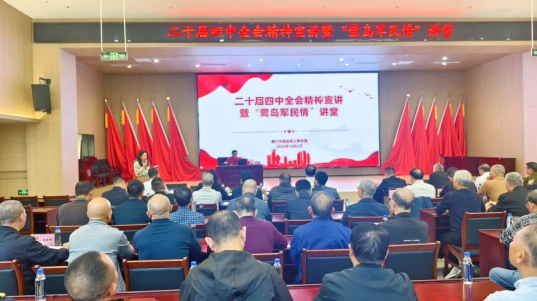 为深入学习贯彻党的二十届四中全会精神,12月2日上午,厦门市退役军人事务局举办“鹭岛军民情”讲堂,邀请厦门市委党校周明伟教授作专题辅导讲座。局党组成员、机关及直属单位党员干部和部分军休老干部代表参加学习。