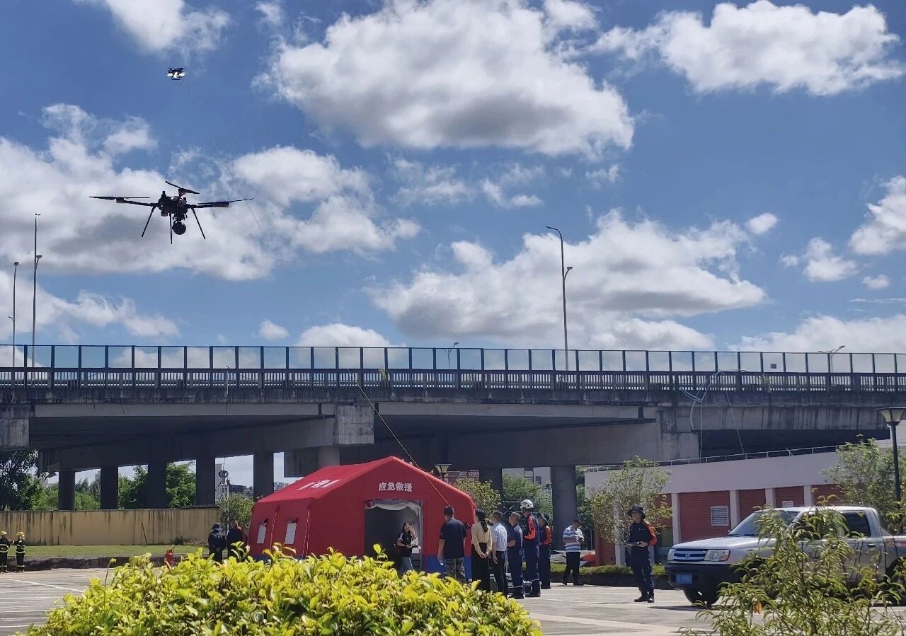演练现场,伙食保障单元、野外炊事单元,在规定时间内,迅速完成指定保障科目,动作熟练、演练高效。应急救援区与装备展示区,急救人员现场演示除颤仪操作流程,传授急救技巧;技术保障人员对故障车辆实时抢修,快速完成故障排除。演练还特别邀请厦门519救援队和戎卫救援队,分别进行野外帐篷搭建、无人机投送和火情处置演练。